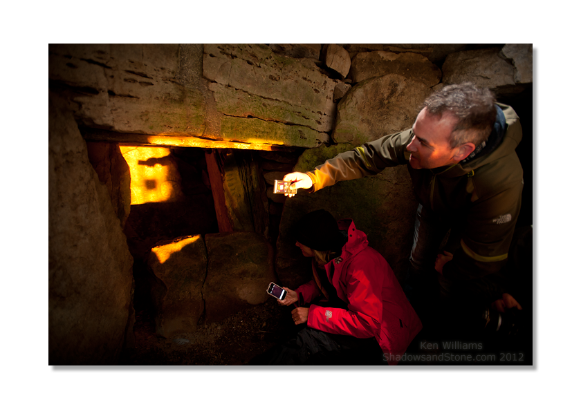 Previous Image Next Image Equinox, September 2012, Cairn T, Loughcrew, Co. Meath Catching the sunlight on the backstone of the rear chamber of the passage tomb