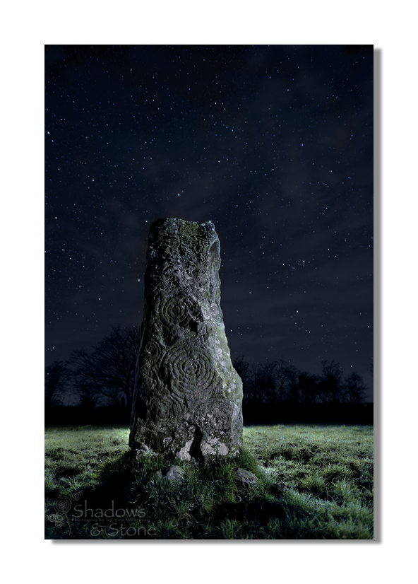The site is located down a maze of local minor roads, miles from the nearest village or town and is about as good a dark-sky location as anywhere on the east coast on very clear nights. Some light pollution from Oldcastle was dimly visible while I was taking pictures, giving an orange tint to some of the longer exposure photographs. Seeing as it was heading into the St. Patrick’s festival weekend, I thought it would be worth rummaging around the bottom of the camera bag for some Strobist gels to add a festive green tint to the stone, I’m not normally a big fan of using different coloured effects with flash but here’s the slightly more subtle results using a fluorescent correcting light shade of green over the handheld flash unit:
